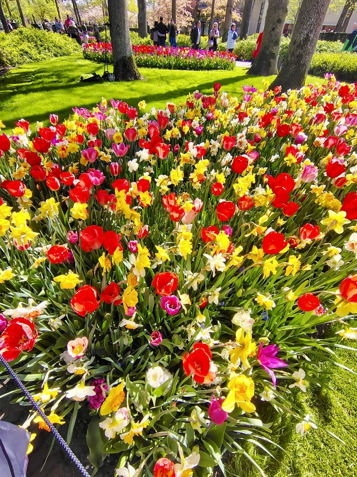 Další den jsme se vydaly do květinového parku Keukenhofen. Zlatý hřeb výletu. Jede tam krásně přímý autobus z Haarlemu (na příštím výletě budeme bydlet tam 😊). I když vlak do Haarlemu z pobřeží byl taky pohoda, byly jsme tam v cukuletu.